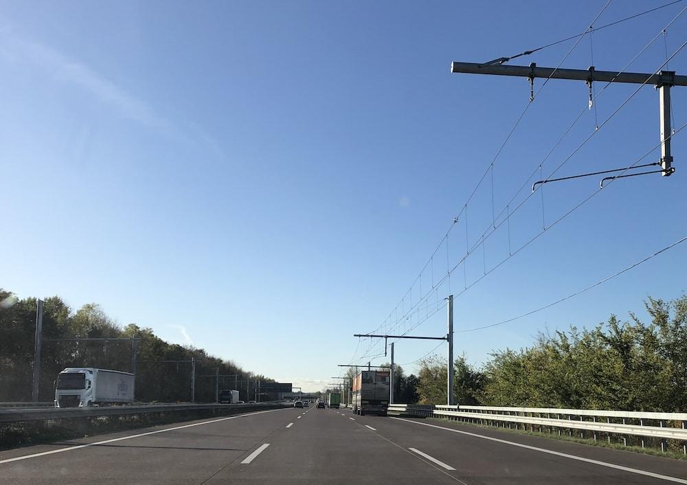 Oberleitungen für den Lkw-Verkehr – ebenfalls eine Alternative zu Diesel und Co. – gibt es in Deutschland allenfalls auf Teststrecken, wie hier auf der BAB 1 bei Lübeck. Frank Urbansky